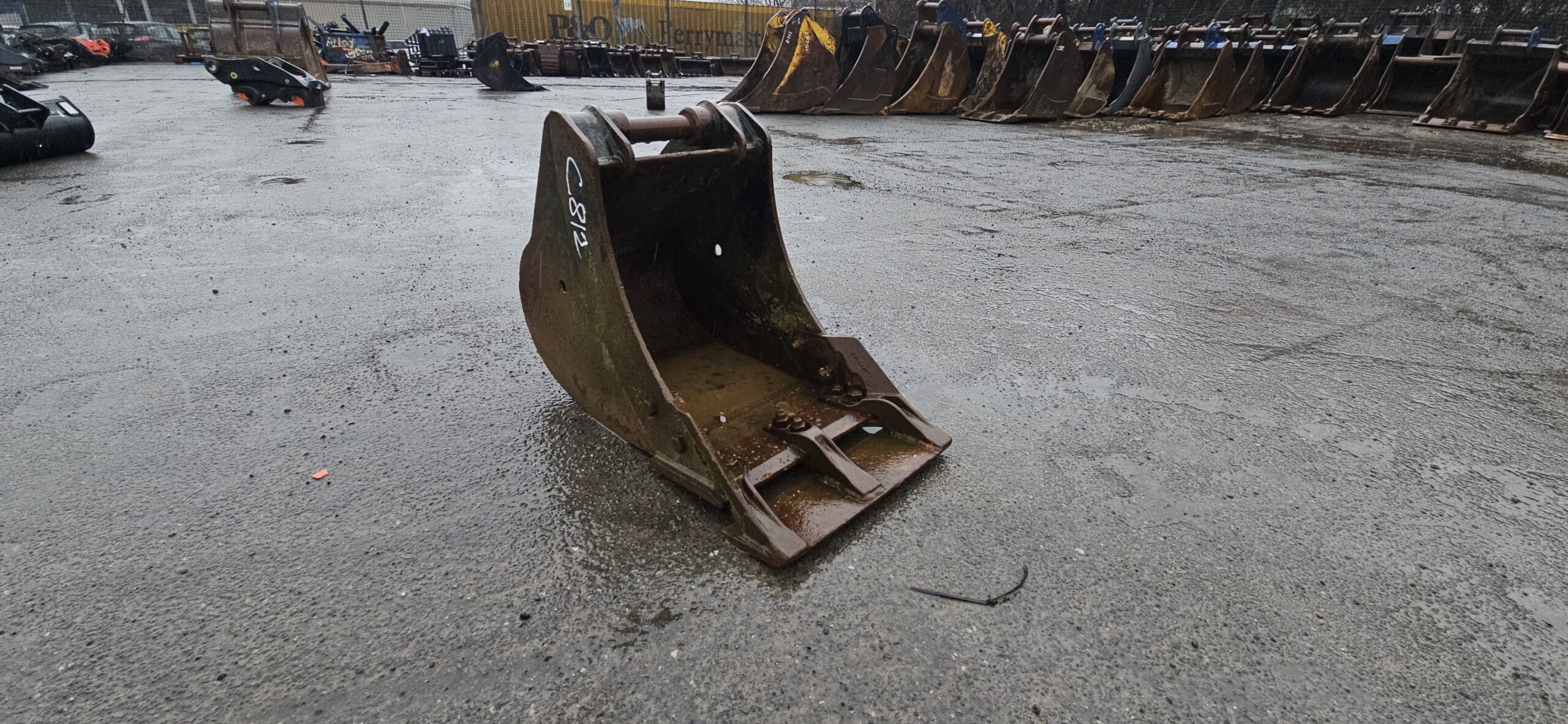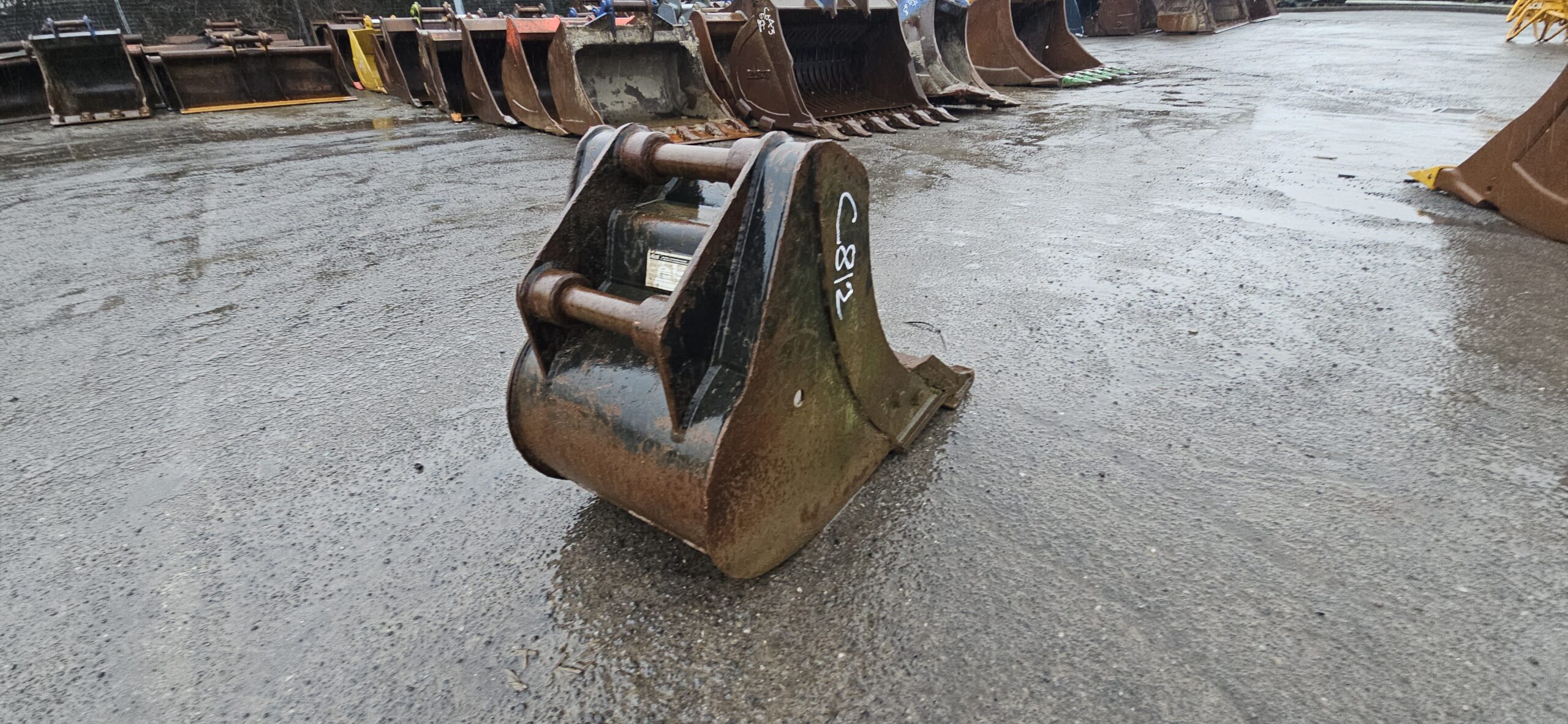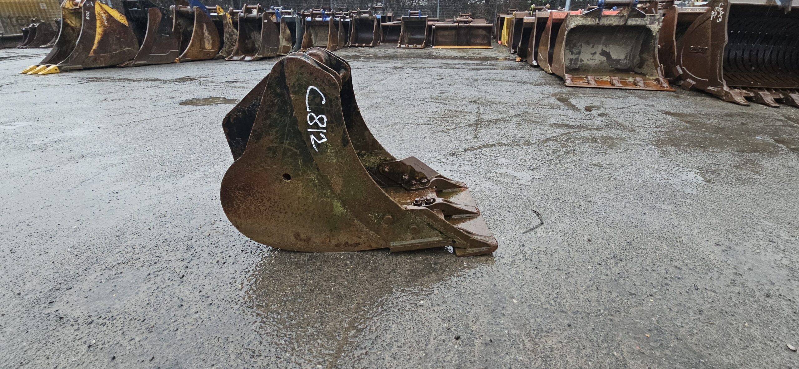 C812 is a 450mm wide bucket utilising 45mm pins, and is an Excavator attachment.
